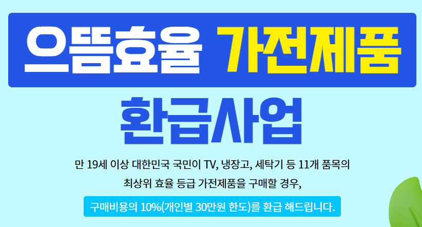- 예: 200만 원짜리 1등급 냉장고 구매 시 → 20만 원 환급 가능